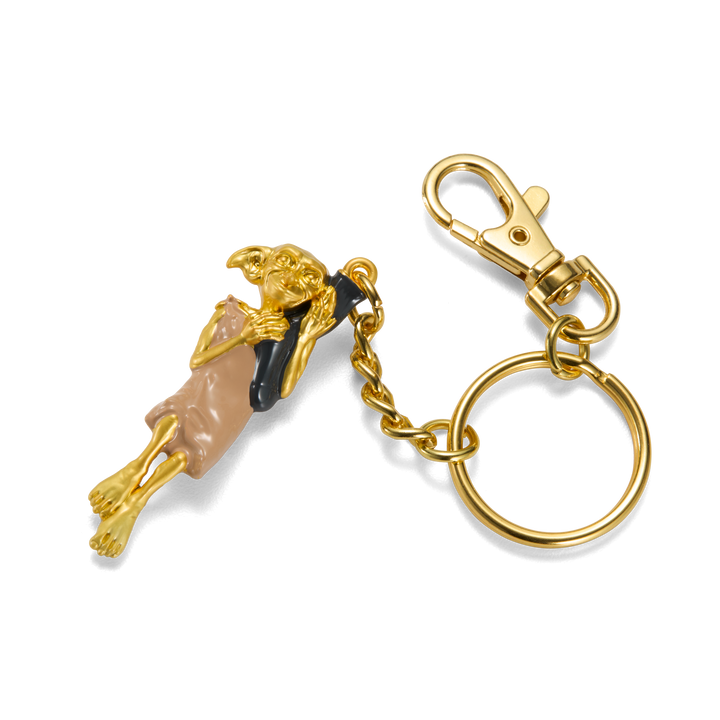 Il portachiavi, realizzato in metallo color oro rappresenta Dobby con in mano il calzino che lo ha liberato. Un accessorio che abbellirà le vostre chiavi, ma non solo, anche per zaini e borse.