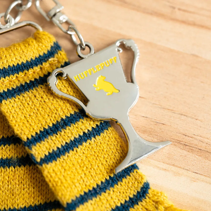 Il portachiavi è composto da due ciondoli, uno è una simpatica sciarpa realizzata con i colori della Casa Tassorosso mentre l'altro è dedicato alla Coppa Tassorosso. Un accessorio super simpatico che abbellirà le vostre chiavi, ma non solo, anche per zaini e borse.