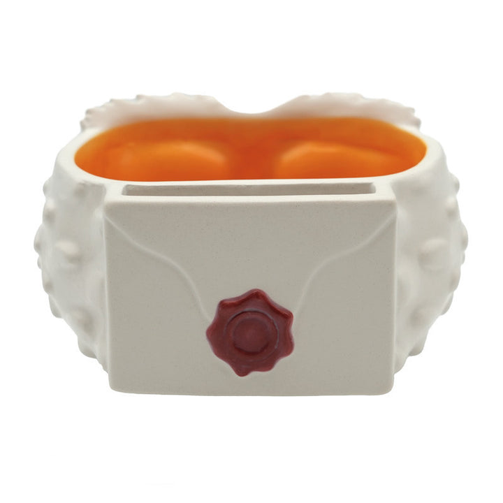 La tazza riporta i simpaticissimi occhi di Edvige, mentre sul retro rappresenta la Lettera Di Hogwarts. La scodella di Hogwarts viene fornita con una pratica scatola.