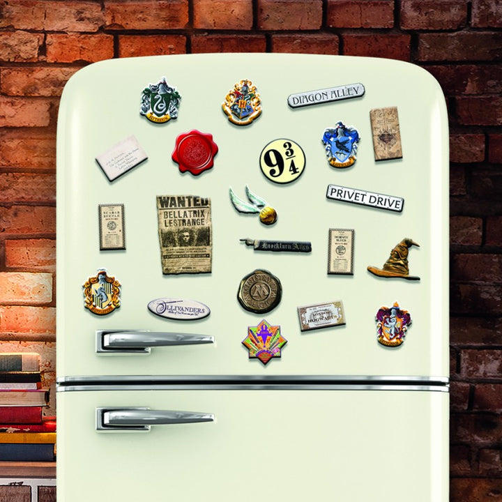MAGNETI DI HOGWARTS: Un set di 21 splendidi magneti ispirati alla saga di Harry Potter per decorare il frigorifero e ogni altra superficie metallica!