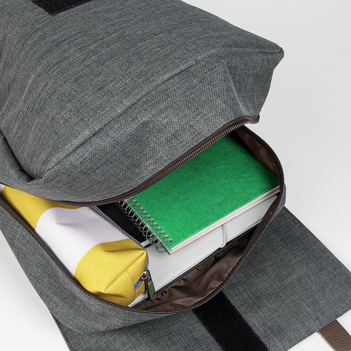 Lo zaino è dotato di doppia chiusura, una con la zip e una con strap.