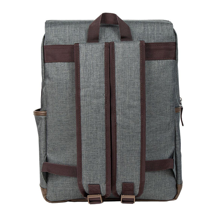 Lo zaino è grigio con eleganti inserti marroni. Sul fronte viene rappresentato lo stemma della Casa.